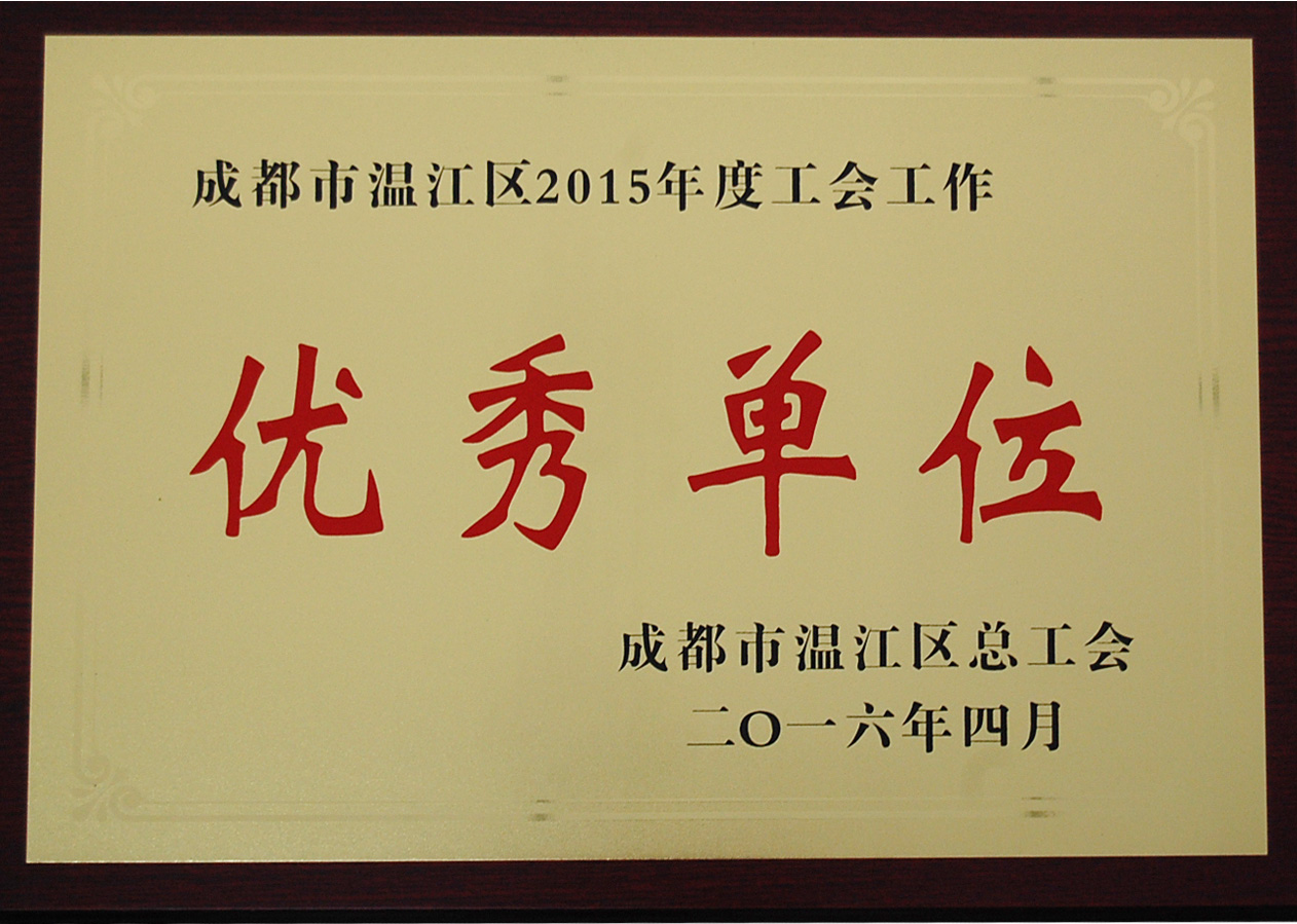 成都市溫江區(qū)總工會(huì)召開(kāi)2015年度工會(huì)工作表彰大會(huì),我公司工會(huì)榮獲成都市溫江區(qū)2015年度工會(huì)工作優(yōu)秀單位光榮稱號(hào),并予以授牌。