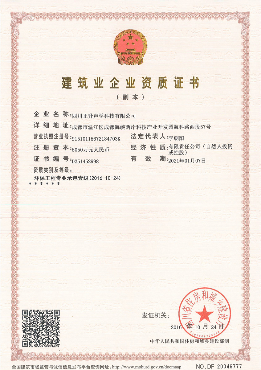 喜報│祝賀正升聲學(xué)取得環(huán)保工程專業(yè)承包一級資質(zhì)